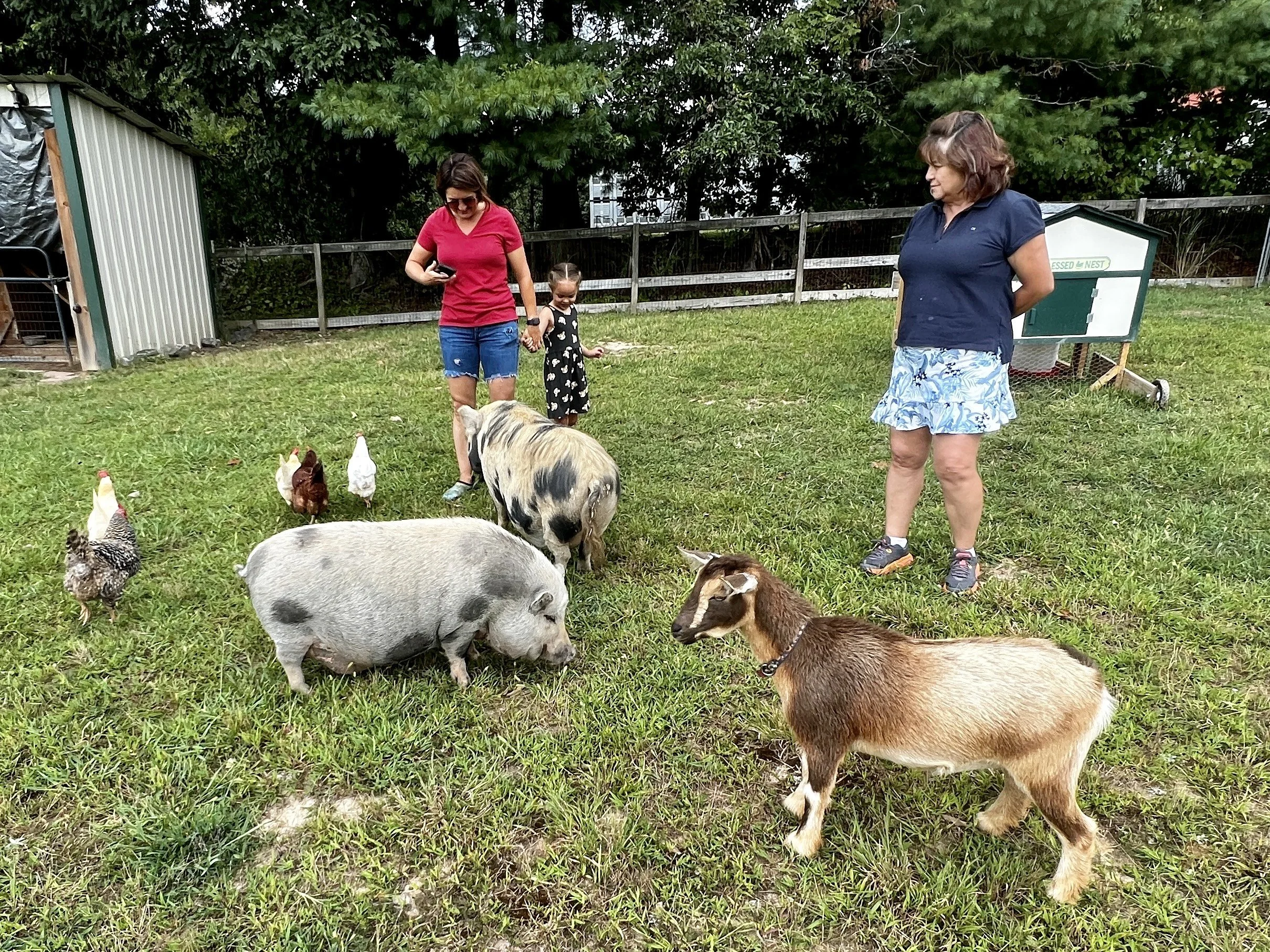 We are handicap accessible; however, all activities are outdoors and the farm’s terrain is grass and gravel, so please consider your mobility needs prior to visiting. Let us know in advance so we can discuss if we are a good fit for your accessibility needs prior to your arrival. The creek is accessible if you are willing to drive your car on a bumpy dirt road. Four-wheel drive is recommended for visits to the creek.*HELPFUL INFO*