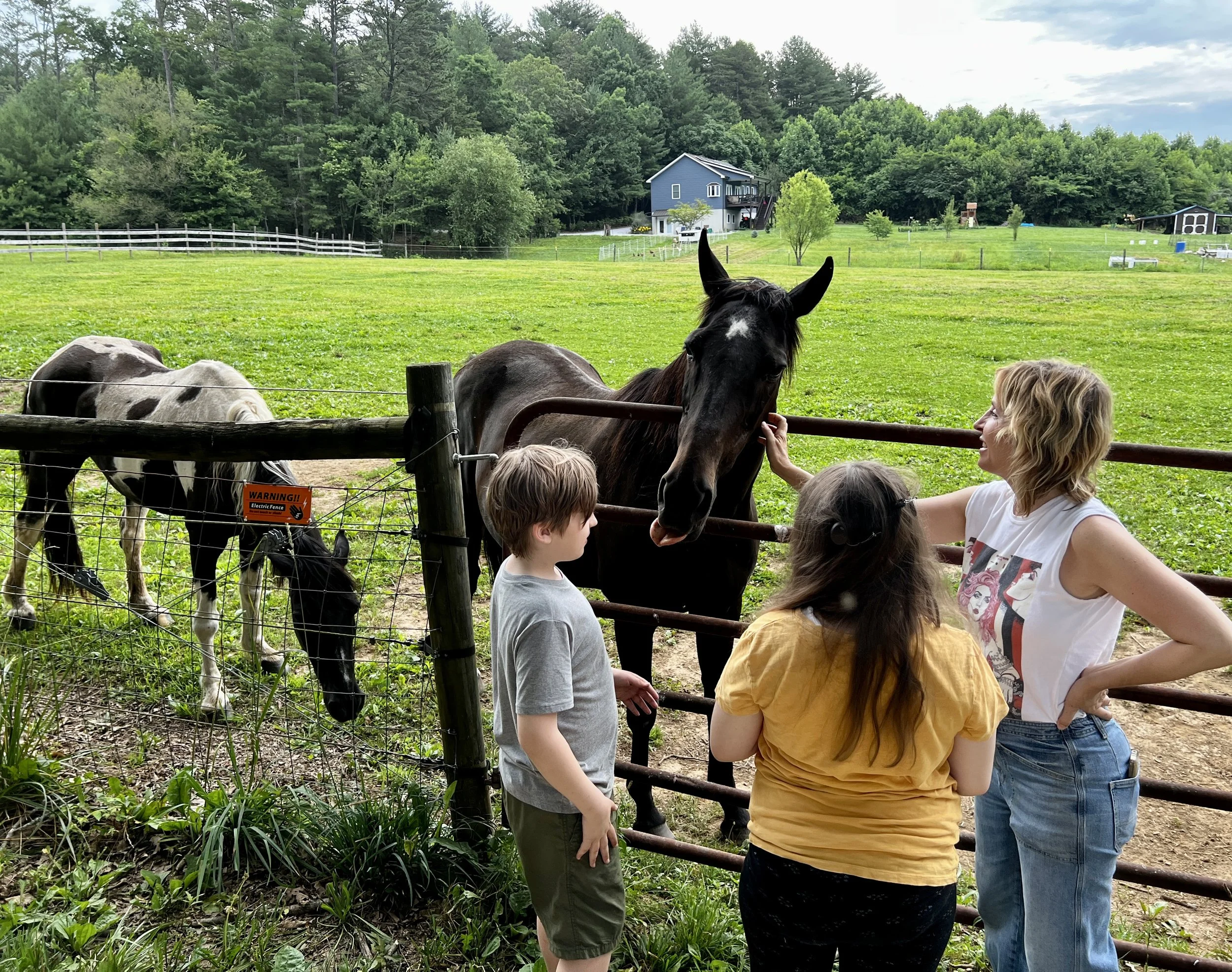 *FYI- to interact with horses and/or to go to the creek it usually requires a 4–5 minute walk down a dirt road with uneven ground and a 6-7 minute walk back up. If needed, ask us about our wheelchair accessibility.